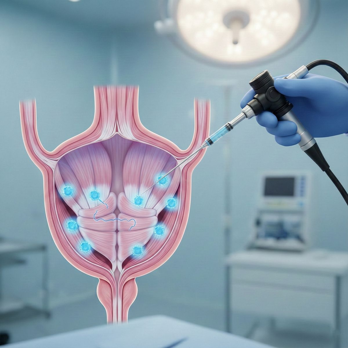 Ce traitement consiste à injecter de petites doses de toxine dans la paroi de la vessie (détrusor), afin de moduler l’activité nerveuse locale et diminuer les contractions involontaires.